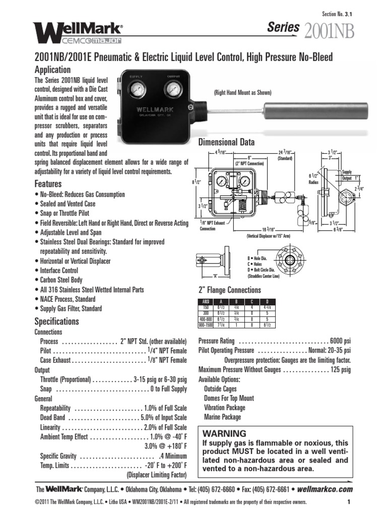 The series uses a. Norriseal Wellmark offers reliable pneumatic and electric liquid level controllers for a variety of industries and applications where fluid levels need to be monitored or controlled. 14 NPT Female Case Exhaust.